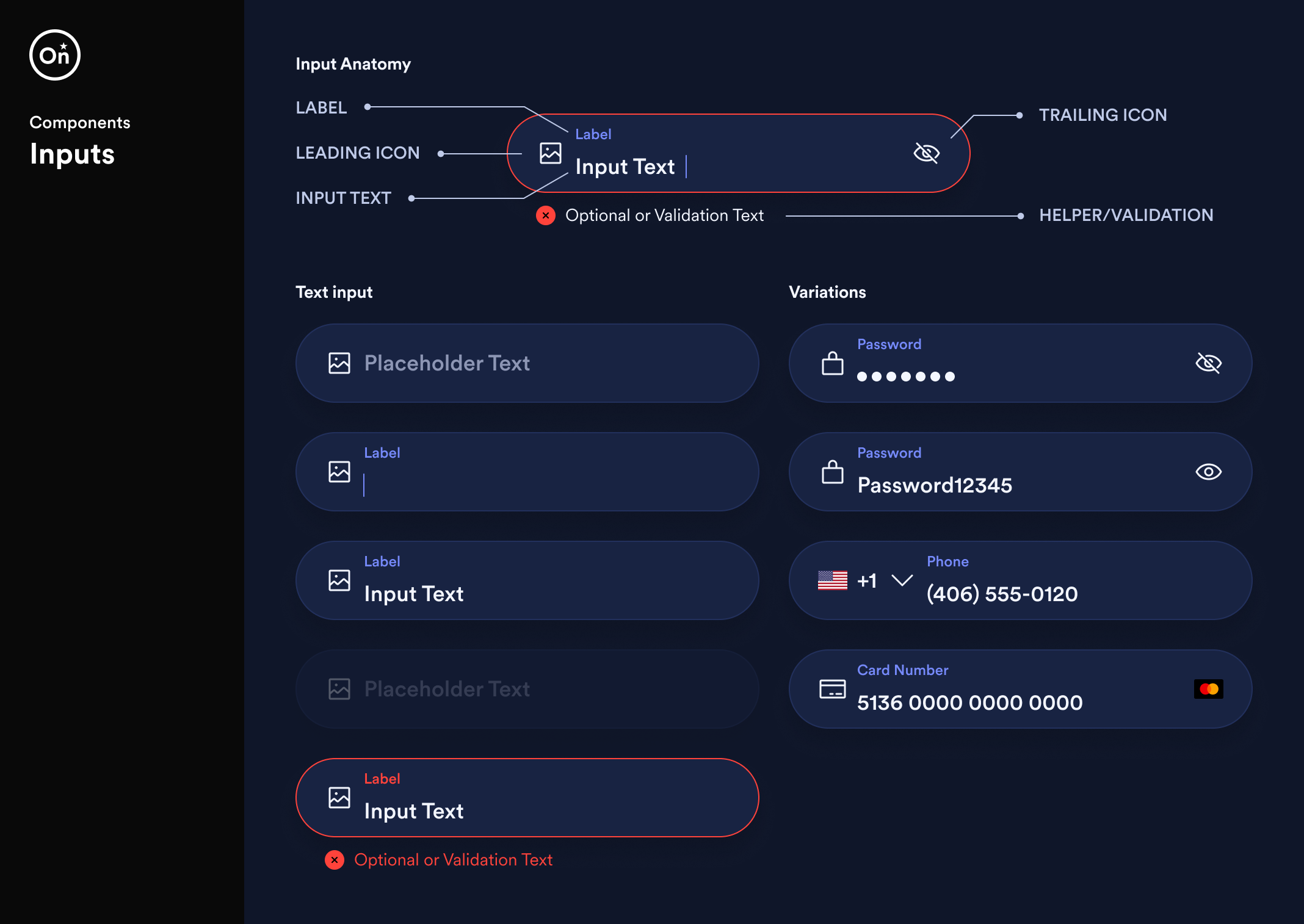 The component supports multiple input types—including text, password, phone, and credit card—while maintaining consistent structure and interaction patterns.