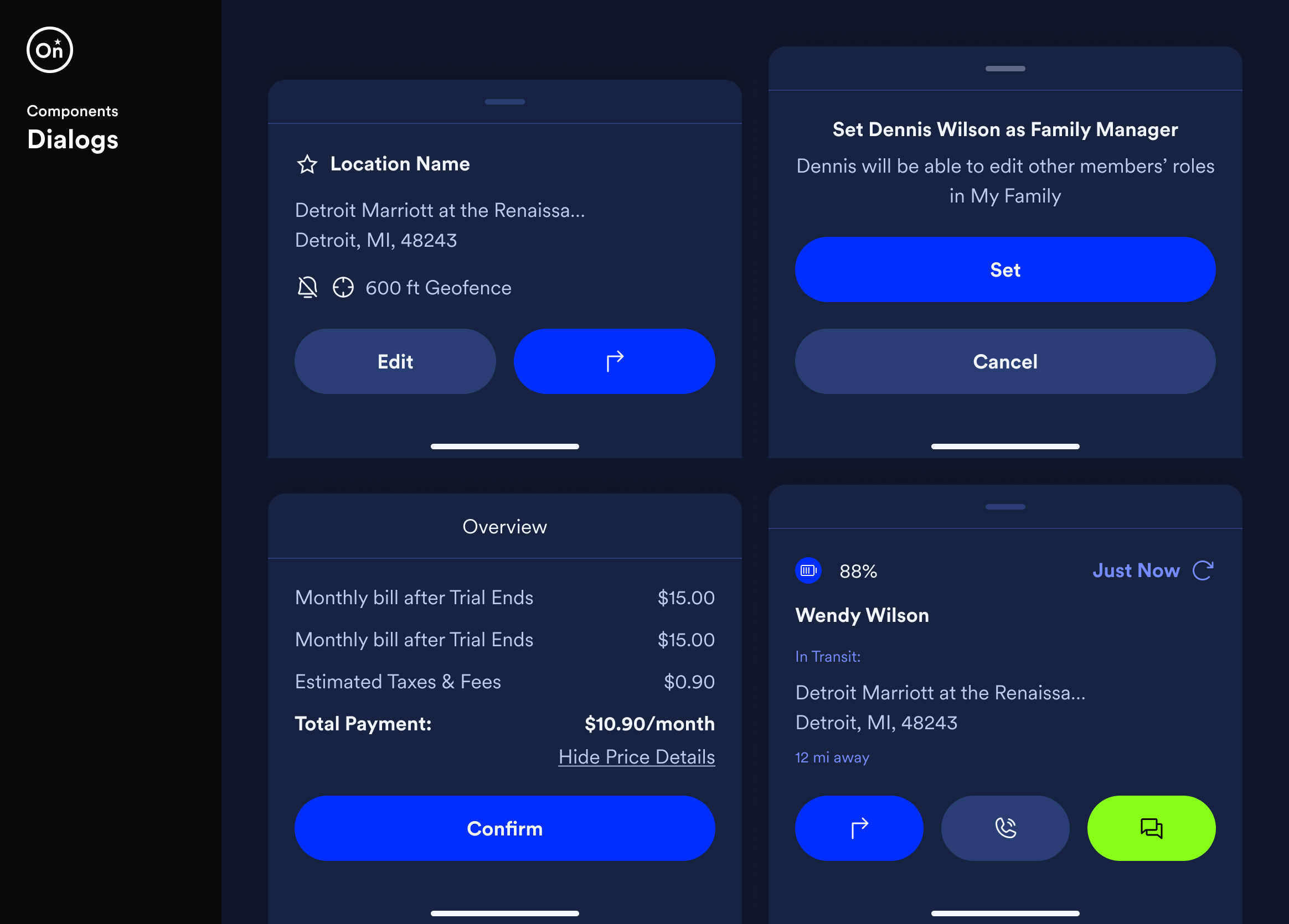 Building on the system foundations, we developed a library of reusable UI components to support consistent and accessible experiences across OnStar products. Each component was designed with clear interaction patterns and scalable structure to help teams design and build interfaces more efficiently.