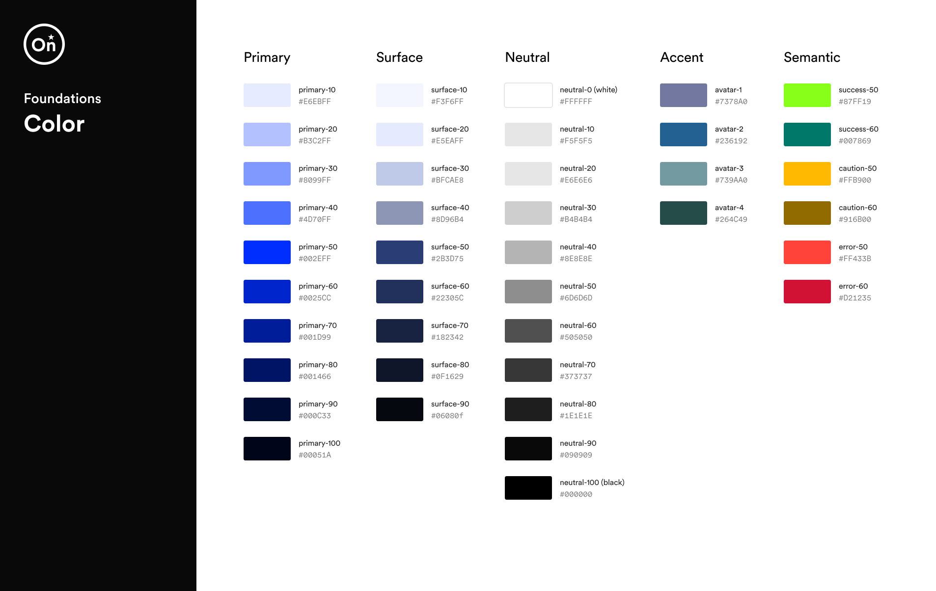 To ensure consistency and scalability across the design system, we established a set of design tokens that defined the foundational visual properties of the interface. Tokens provided a centralized way to manage values such as color, typography, spacing, and elevation.