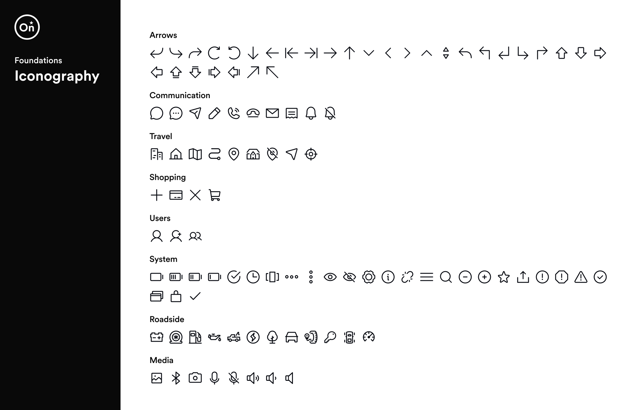 The icon system uses rounded line icons to create a friendly and approachable visual language aligned with the OnStar brand. A consistent stroke weight and simplified forms ensure icons remain clear, recognizable, and scalable across both mobile and desktop interfaces.